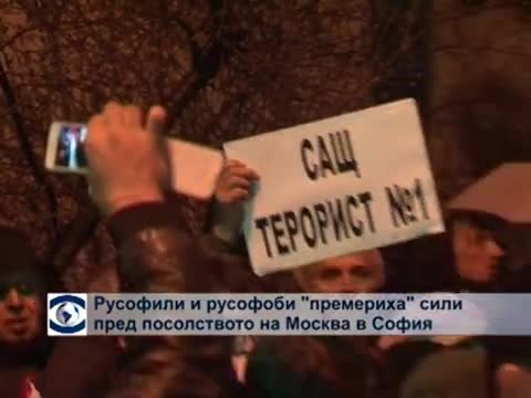 Противници и привърженици на политиката на Москва в Украйна се изправиха едни срещу други пред руското посолство в София. Едната група развяваше съветското знаме и пееше руския химн, а другата скандираше „червени боклуци” и „Путин във Сибир”.