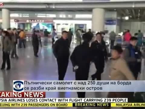 Самолет с над 250 пътници от над 10 националности е изчезнал край Малайзия в петък срещу събота. Виетнамските авиационни власти потвърдиха, че са загубили връзка със самолета "Боинг 777", изпълняващ полет от Куала Лумпур за Пекин.