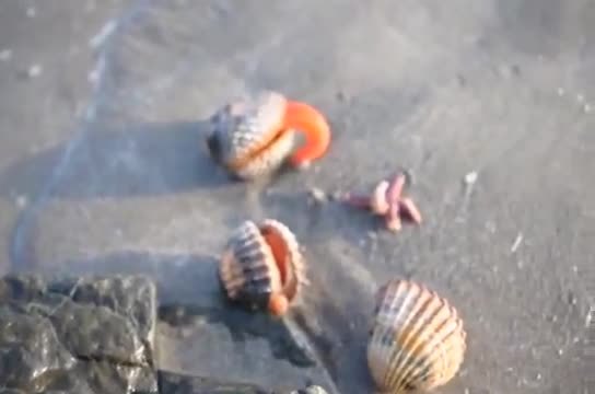Живи миди Кардиум на брега, а едната даже прави и движения!