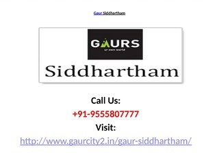 Gaur Siddhartham http://goo.gl/xkSS9B is a world class residential project situated at prime location of the Ghaziabad, Siddharth Vihar.