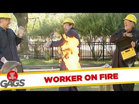 It's getting hot in here! Construction workers heat things up on the job when one of the guys' butt catches fire...