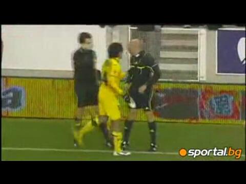 Футболист удря с обувката си съдия