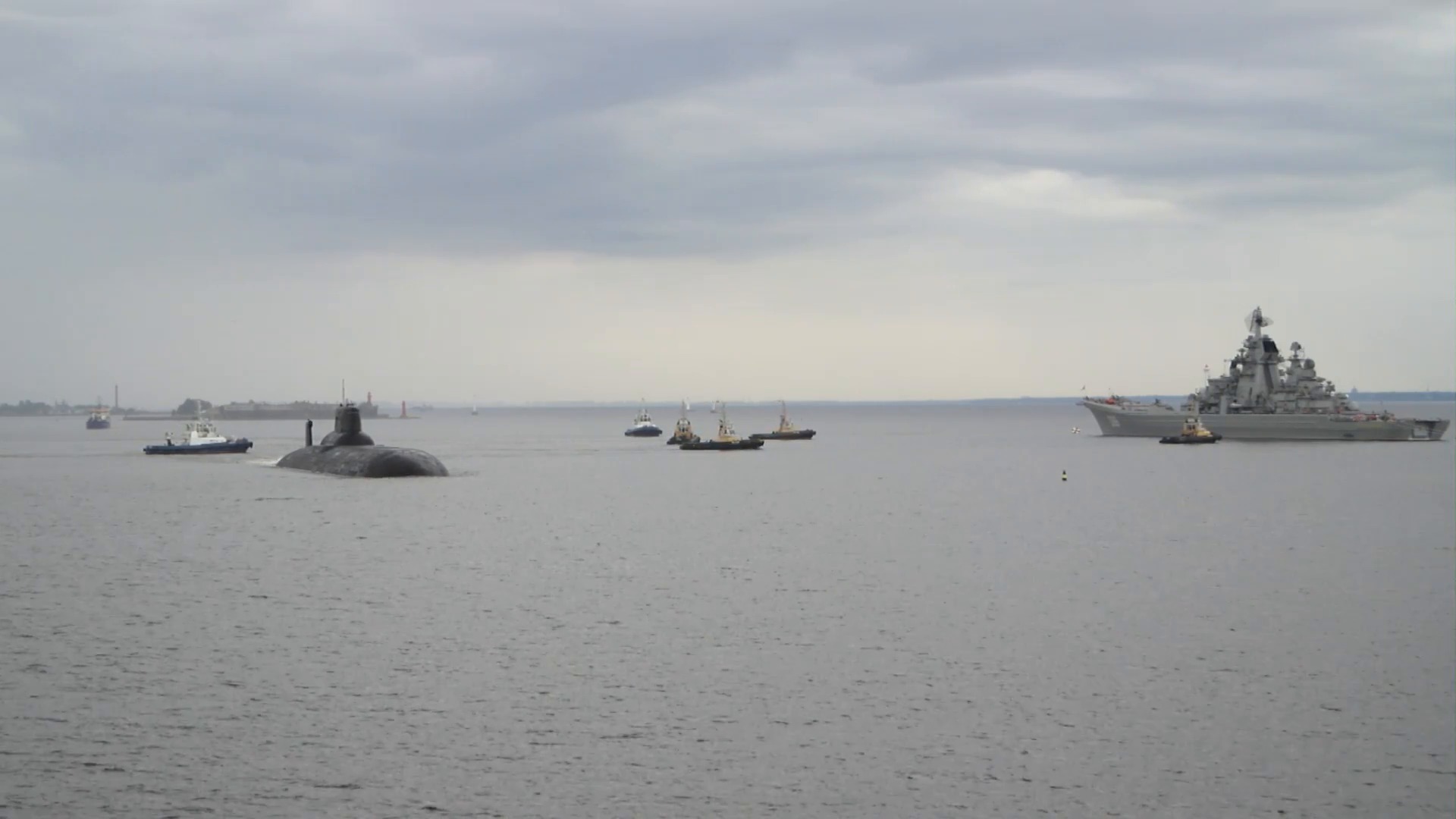 2017-07-31 - Уход тяжёлого атомного ракетного подводного крейсера стратегического назначения ТК-208 «Дмитрий Донской» проекта 941 «Акула» с кронштадтского рейда.