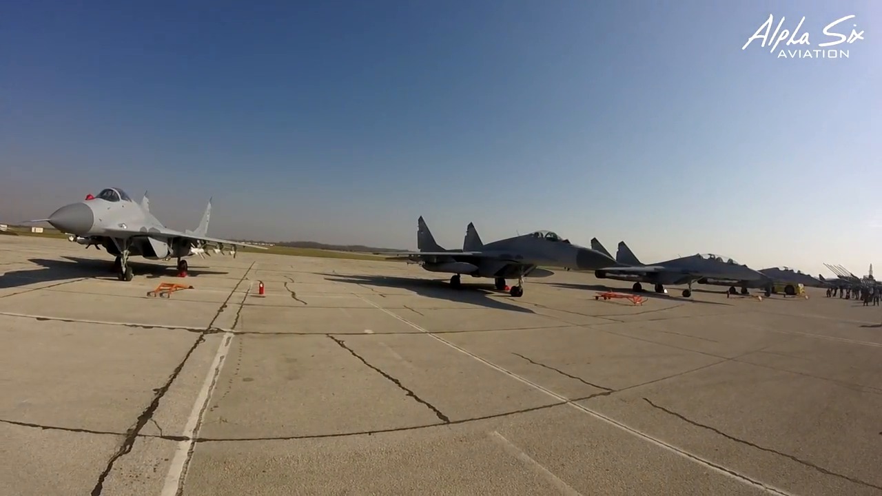 20.09.2017 /// Na današnjoj ceremoniji proslave dana oslobodjenja Beograda na aerodromu Batajnica, predstavljeni su novi Mig-ovi 29 koji su nedavno stigli kao poklon iz Rusije. Šest novih letilica danas su po prvi put predstavljene Srpskoj javnosti. Letelice su u operativnom stanju a za nekoliko meseci će uslediti njihova kompletna modernizacija i remont. Ovo je veliki napredak za Srpsko Ratno Vazduhoplovsto posle dužeg niza godina.