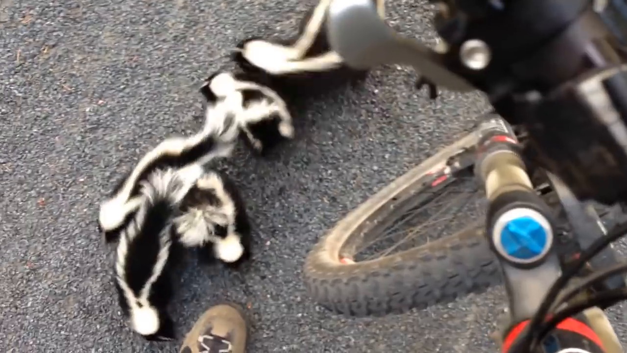 ВЕЛОСИПЕДИСТ СРЕЩА СЕМЕЙСТВО СКУНКСОВЕ
