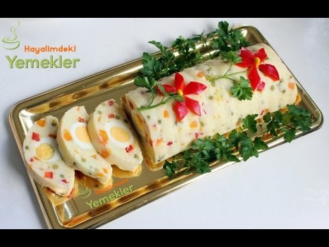 Haşlanmış soyulmuş yumurtaları bütün olarak tek sıra halinde patatesli harcın üzerine dizin üzerine kalan patatesli harcı koyun ve yumurtaların üzerini kapatarak düzleştirin kenarda sarkan streş folyoyu üzerine kapatın elinizle streç folyonun üzerini bir daha düzleştirin ve dinlenmesi için buzdolabında bir kaç saat dinlendirin( ben geceden yaptığım için 1 gece buzdolabında bekledi ) uzun bir tabağa ters çevirin servis yapın.