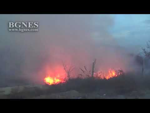 Огромен пожар гори край Дупница, магистрала Струма е силно задимена. Огънят тръгна от сухи треви край пътя, мина през ниска растителност и навлезе в овощните градини. /БГНЕС
